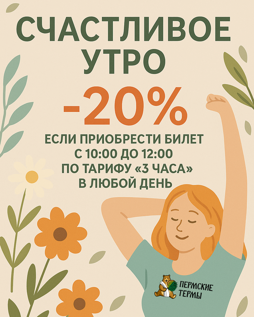 Акция -20% на тариф «3 часа», если приобрести билет с 10:00 до 12:00 в любой день