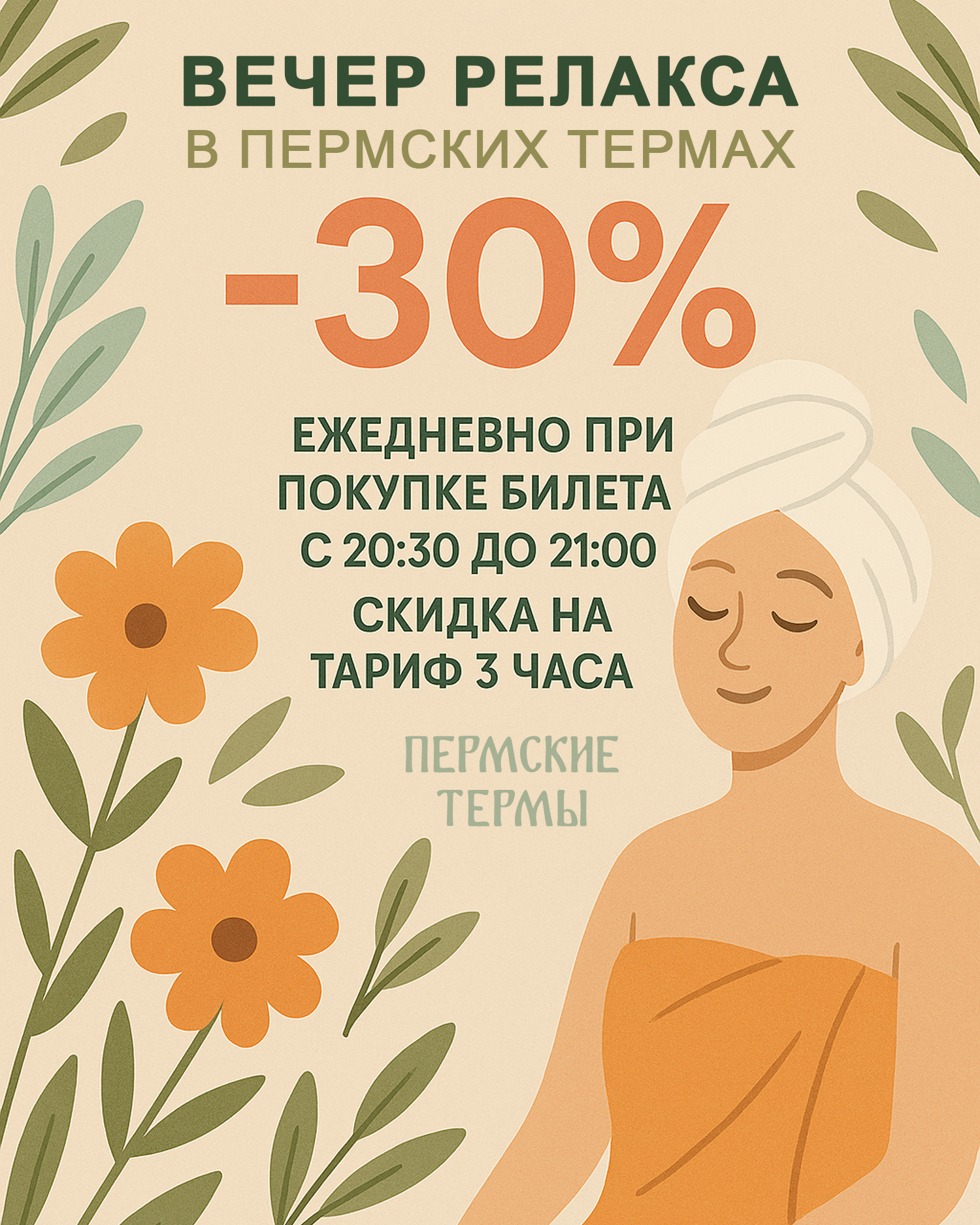 Акция -30% на тариф «3 часа», если приобрести билет с 20:30 до 21:00 в любой день