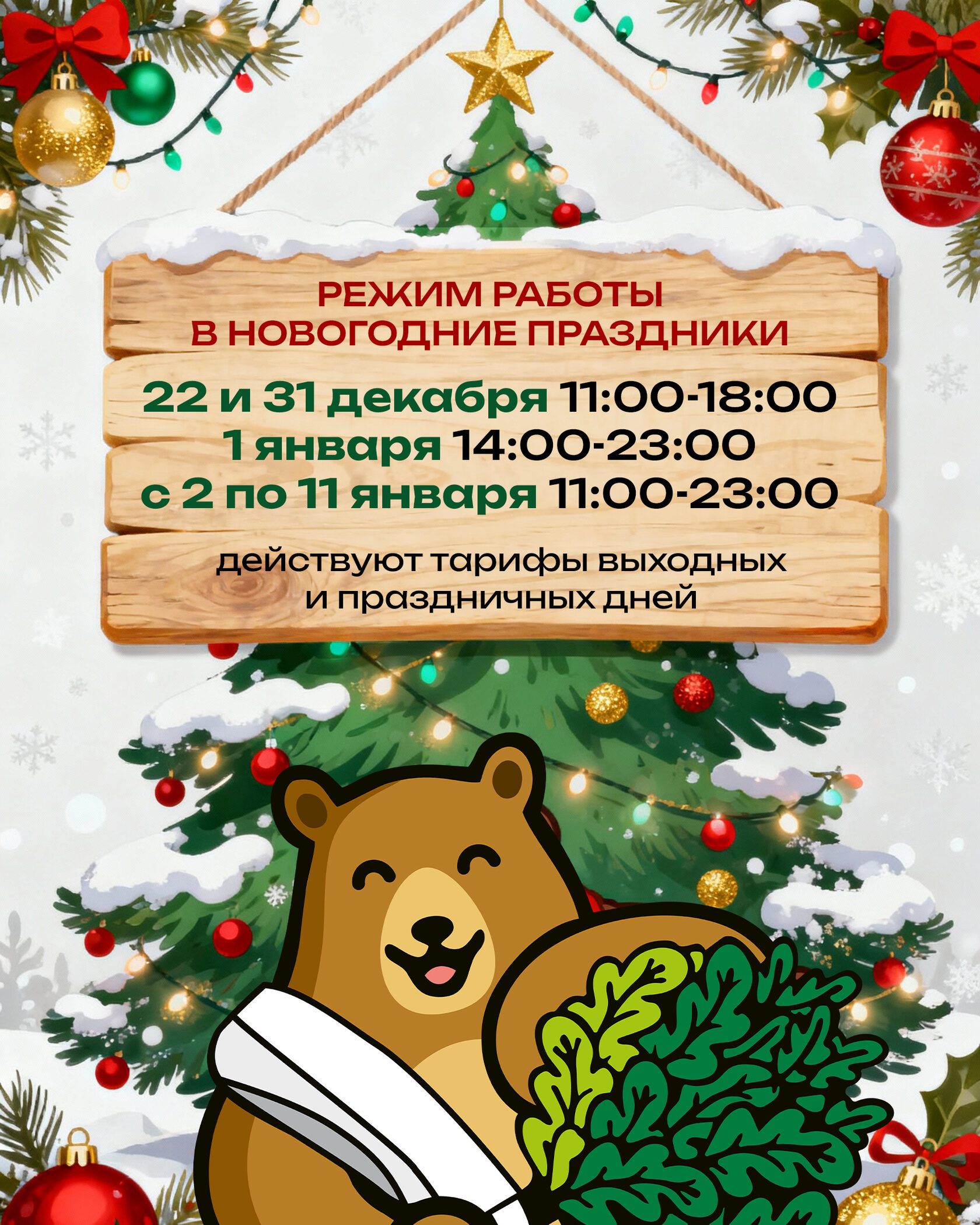Режим работы в новогодние праздники: