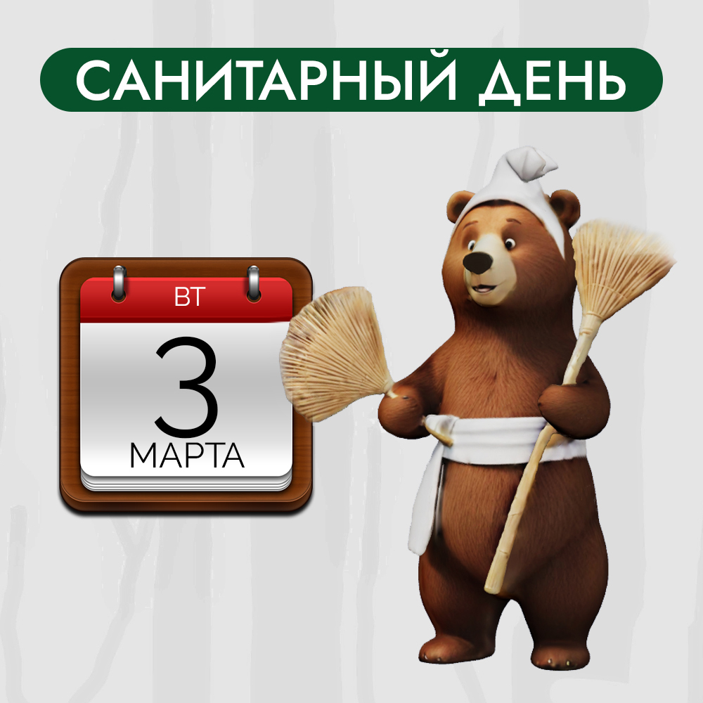 Напоминаем, что санитарные дни мы проводим каждый первый вторник месяца! Мы стараемся для вас и делаем всё, чтобы у нас было чисто и комфортно.